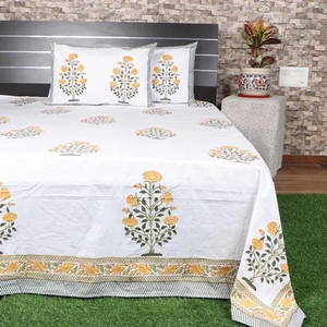The Marigold Cotton Double Bedsheet is made of pure cotton fabric and features a beautiful marigold print.