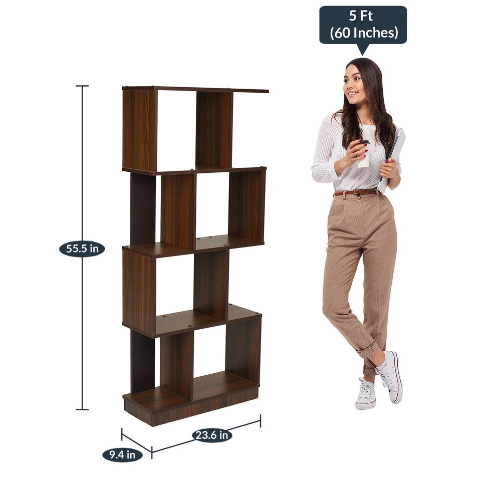 The book shelf is designed in a classic walnut finish that adds a touch of sophistication to your space. With its ample storage space and durable construction, this book shelf is sure to be a valuable addition to your home.The book shelf features a sleek and modern design with clean lines and a simple, yet elegant, appearance. It has five spacious shelves that provide ample storage space for all your books, magazines, and other reading materials. The shelves are designed with a unique checkers pattern that adds a touch of style to the overall design.