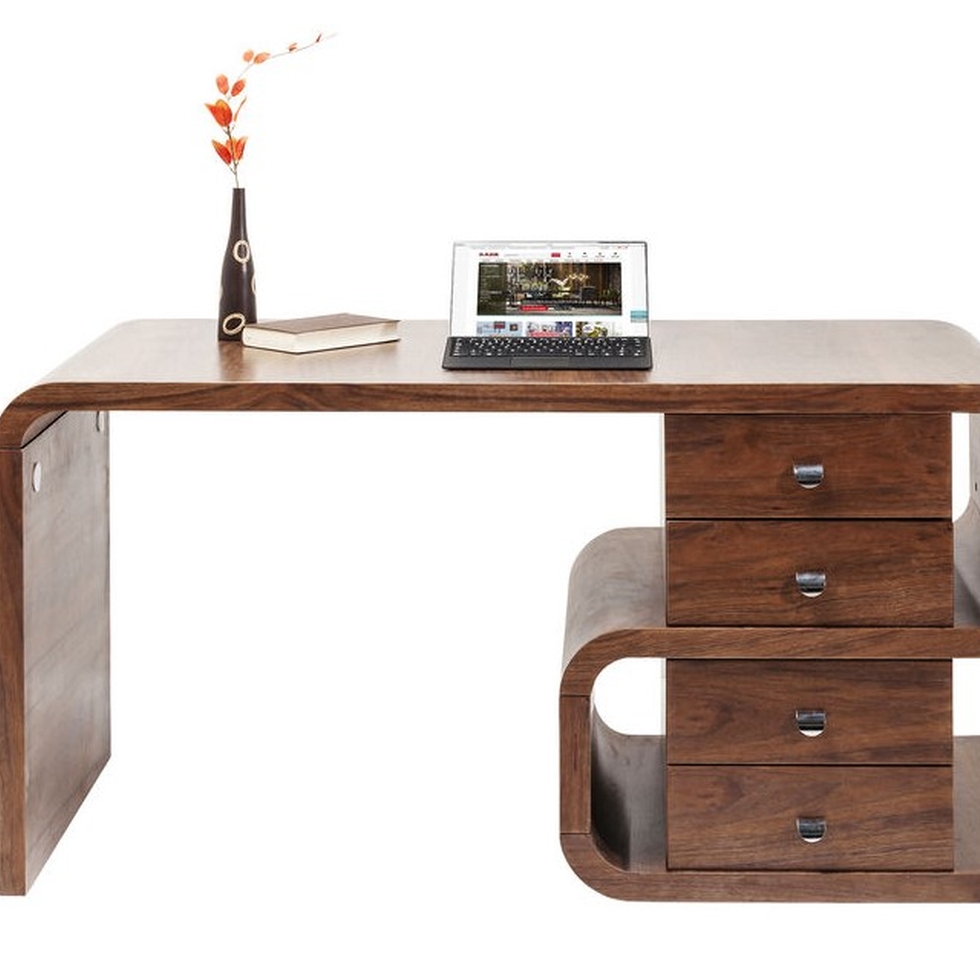 An elegant desk with highly original styling – This desk winds like a snake and with its elegant retro look is ideal for the designer loft or the modern home office. Four drawers offer lots of storage space for all your writing utensils. Stylish handles made of chrome-plated steel add an elegant touch. The White Club series is characterised by organic retro elements, sweeping forms and high-gloss surfaces. These give the desk and impression of timelessness. Its innovative form means that the White Club Snake desk can t fail to catch the eye.